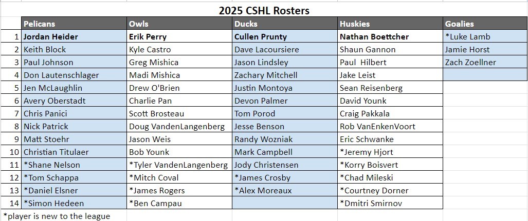 Click on the documents below for Rosters and Schedules
